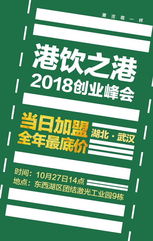 2018港饮之港全国创业峰会武汉站10.27正式启动!